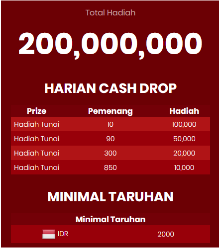 4. Terdapat total 40.300 hadiah tunai dan taruhan ganda senilai Rp 1.004.090.000 yang akan diberikan secara acak kepada pemain yang beruntung.