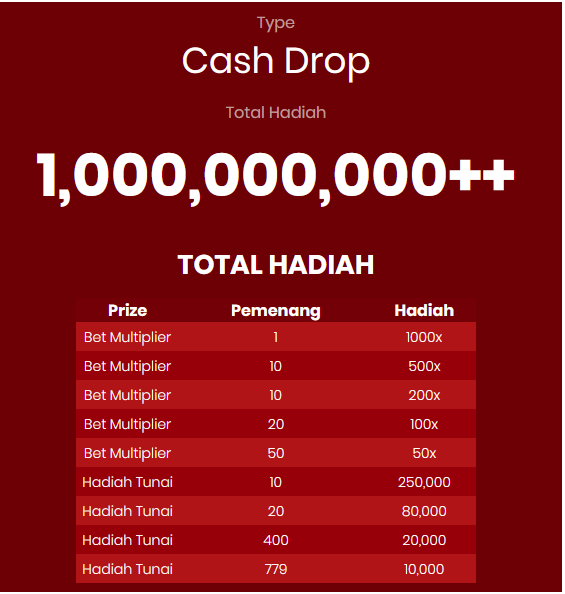 8. Pemain dapat memenangkan lebih dari satu cash drop selama periode promosi.