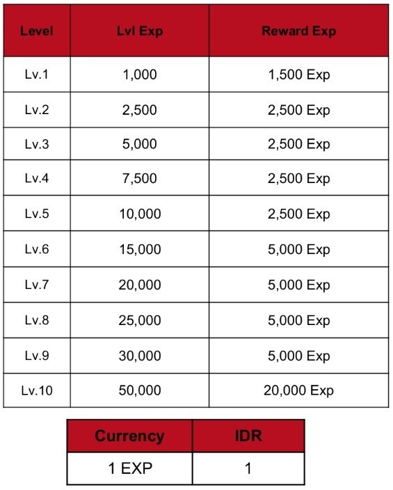 2. Pemain diperbolehkan mengumpulkan poin EXP dari game yang sudah ditentukan di bawah halaman Promosi Royal Reward selama periode acara.